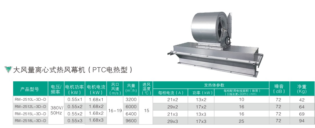 大風量離心式熱風幕機(PTC電熱型)